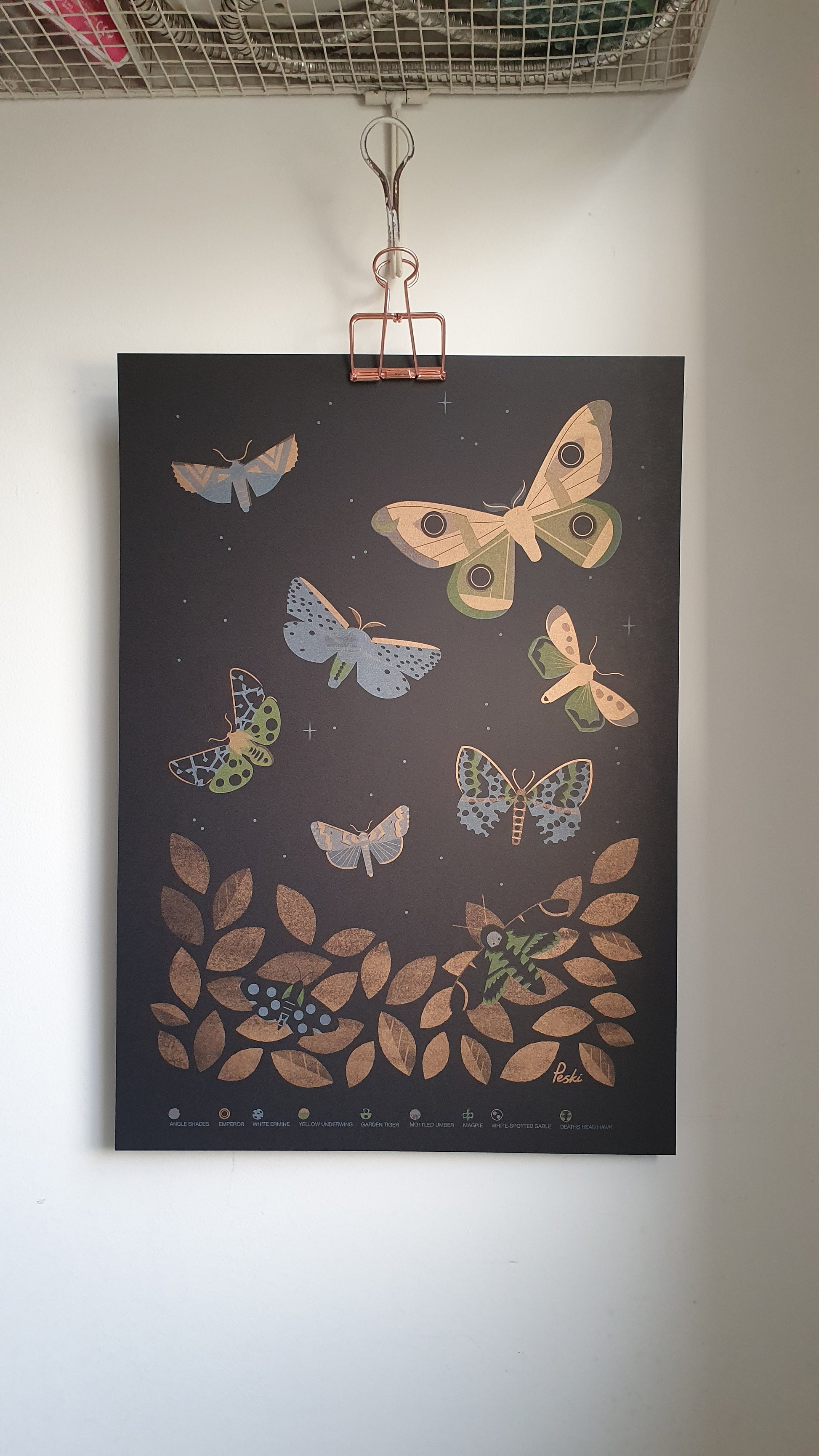 Moths are beautiful creatures. This print features Moths found in the UK and has a handy key at the bottom for easy identification.
