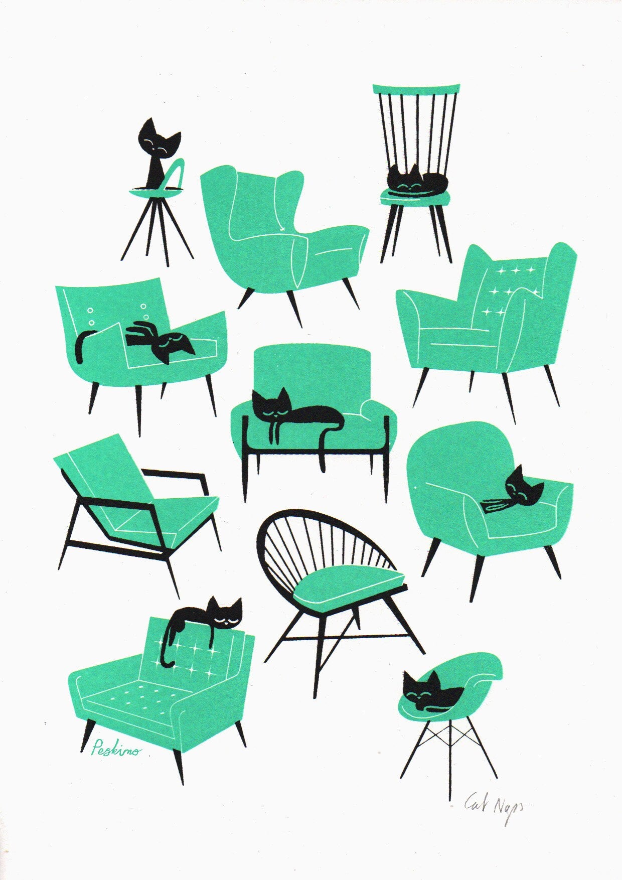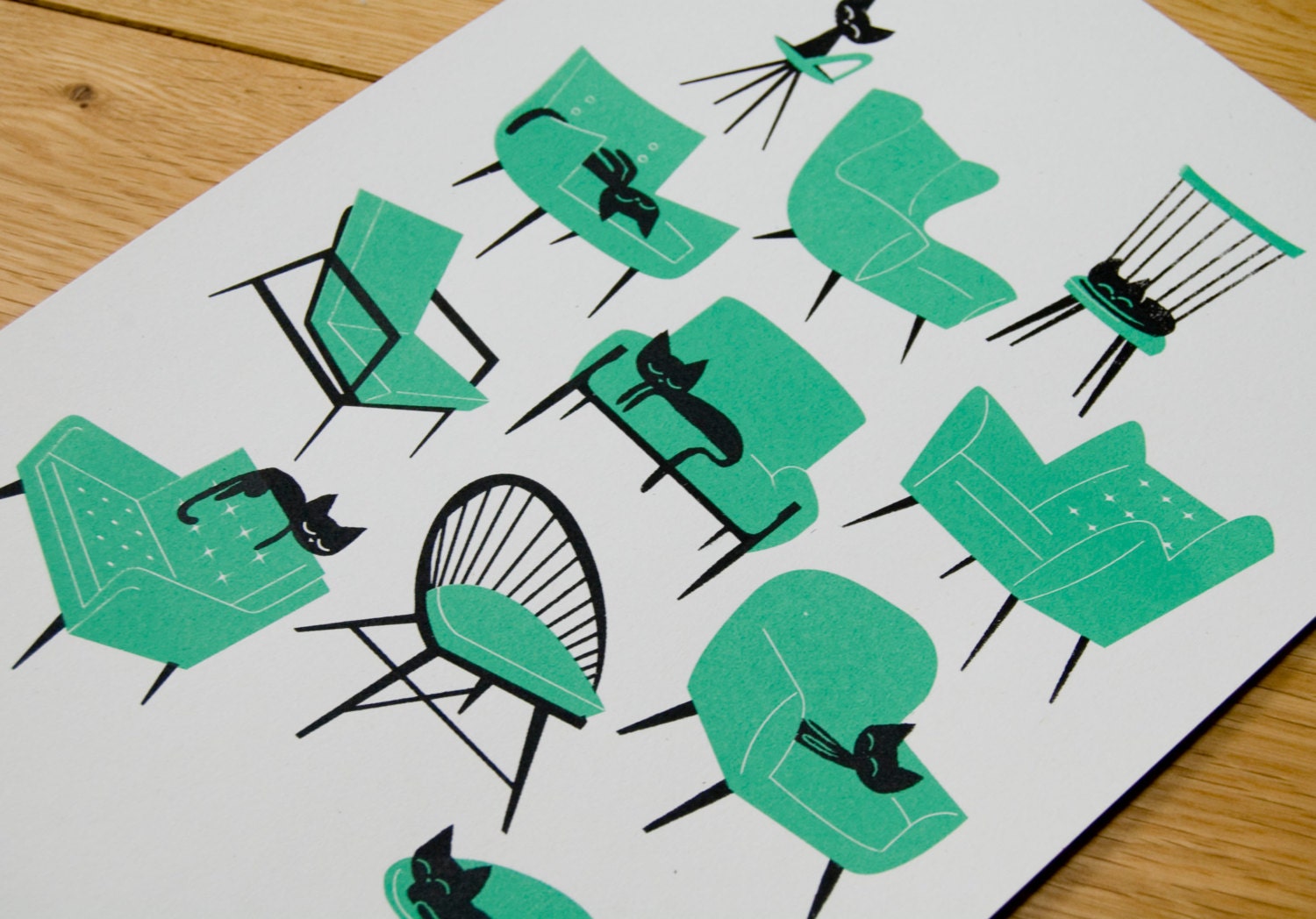 Cat Naps - A4 2 colour screenprint - by Peski Studio