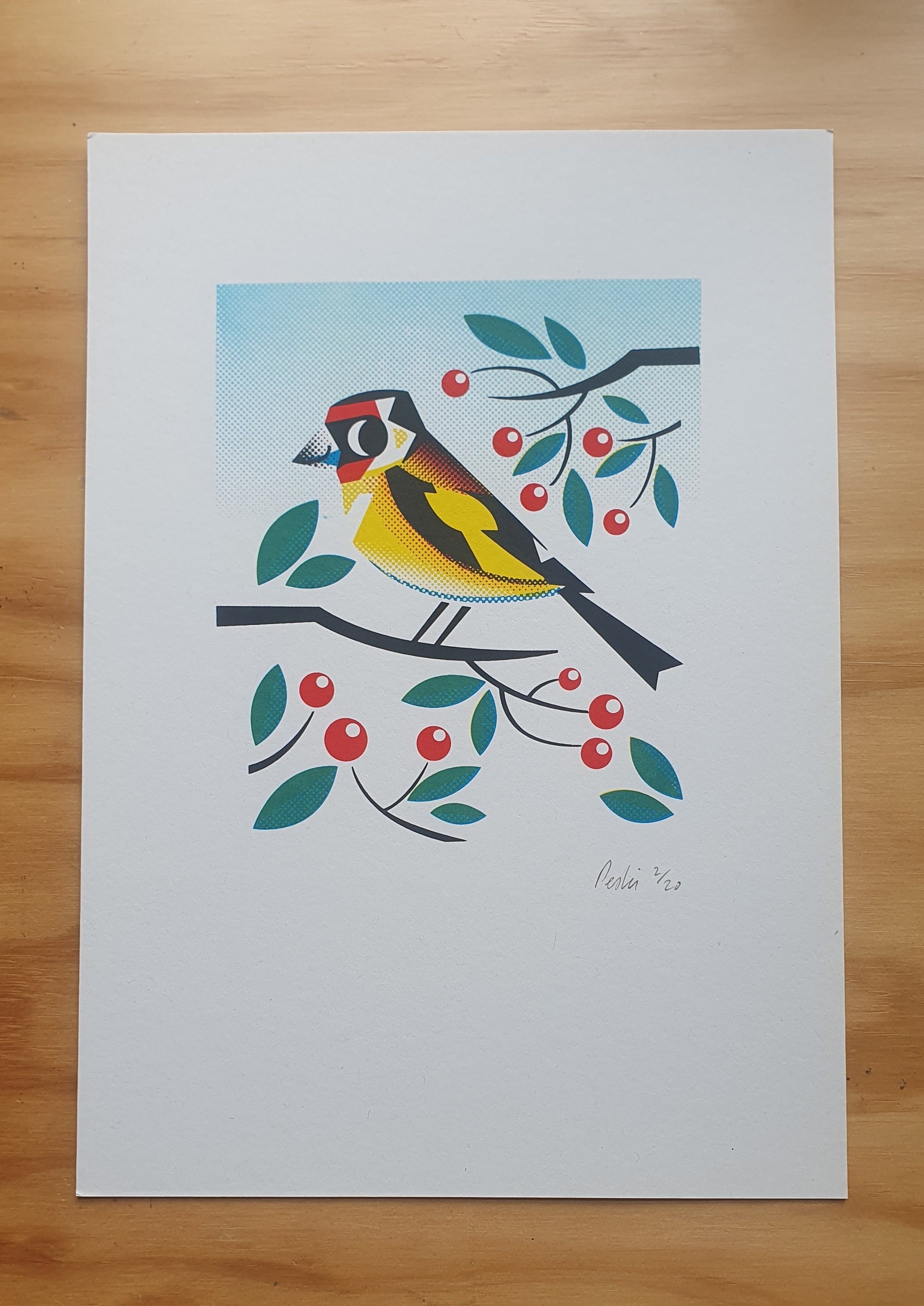 Goldfinch - A4 5 colour screenprint - by Peski Studio
