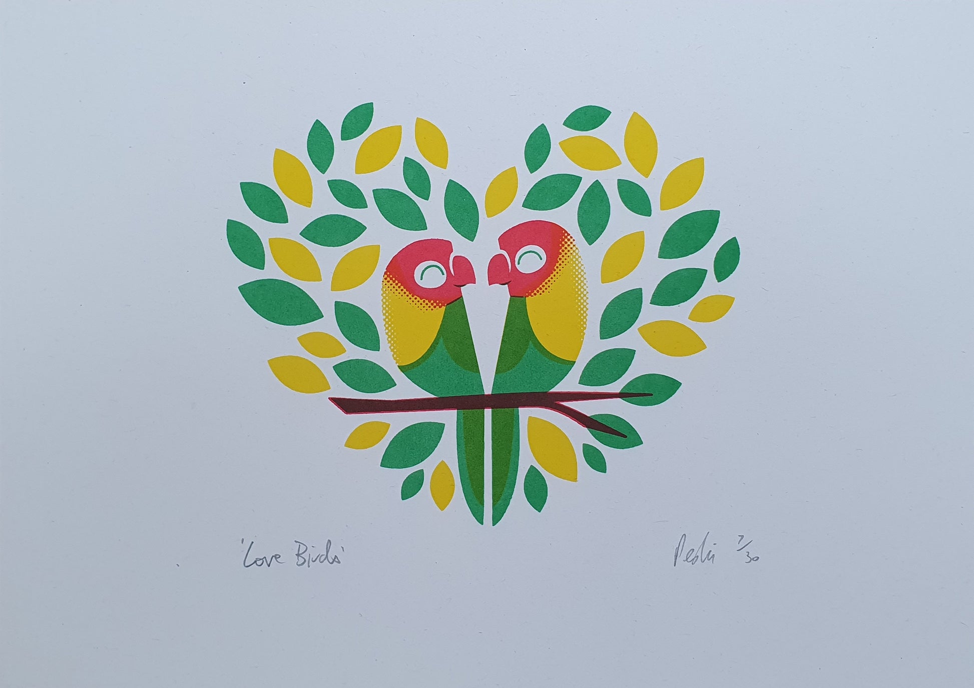 Love Birds - A4 3 colour screenprint - by Peski Studio