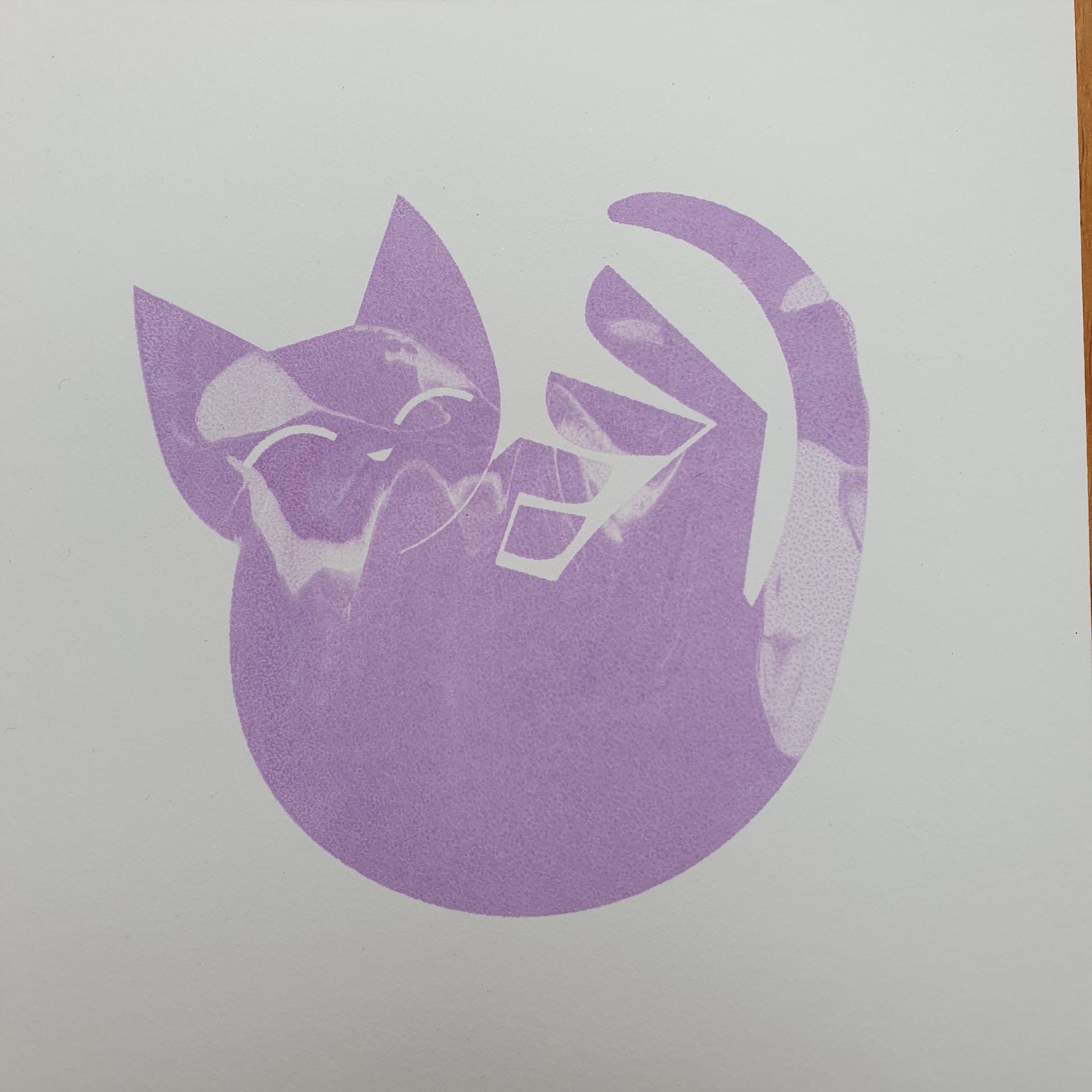 Kitten nap - 1 screen printed greetings card - by Peski Studio