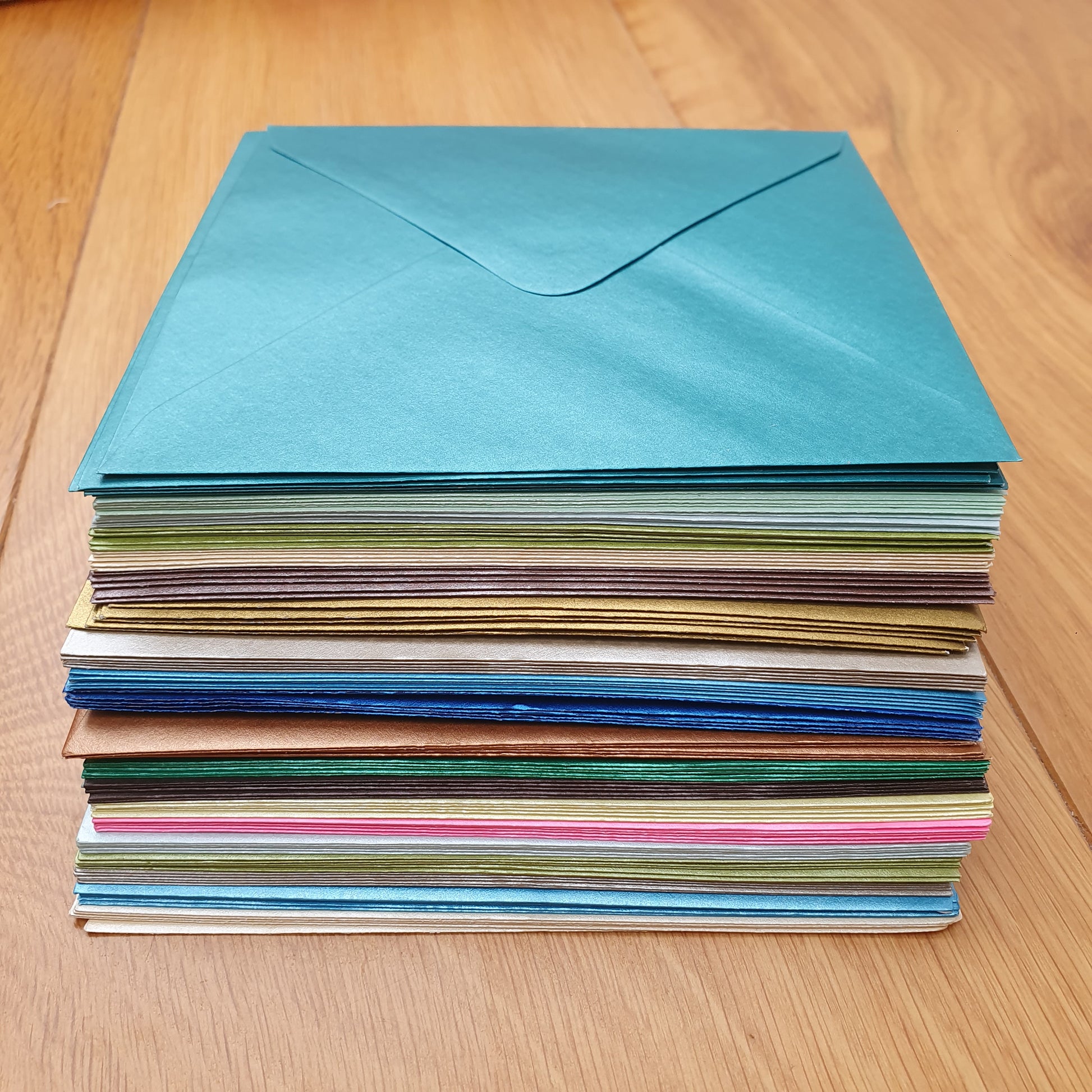 Each card comes with a pearlescent envelope, the colour picked at random.