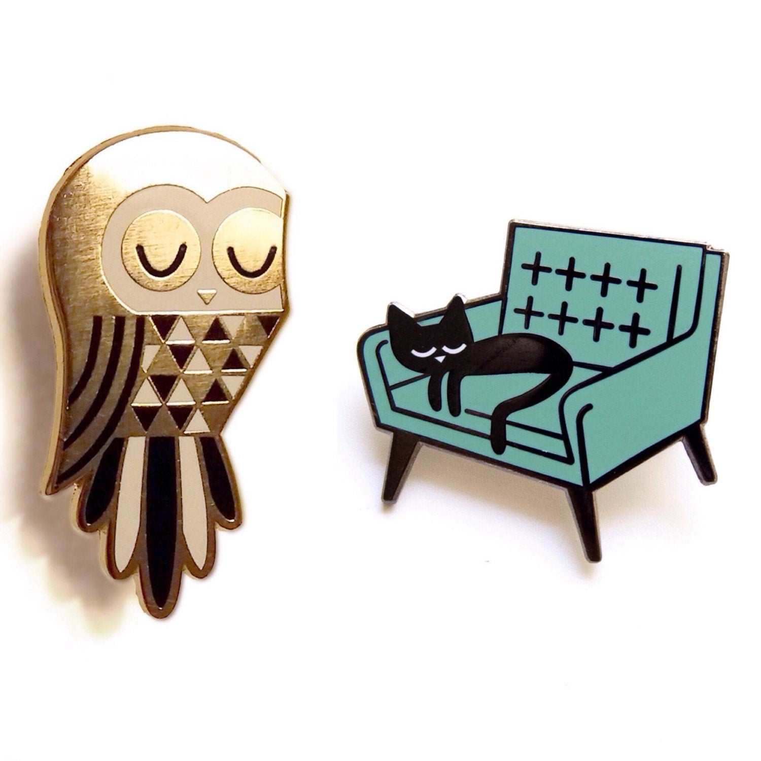 Twit Owl and Cat Nap - Enamel Pin Badges